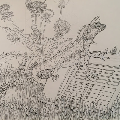 The book is basically what it's title implies. I've done a bunch of drawings set in the Garden of Eden in the last few years, including the title/cover of God and the Devil at War in the Garden, and Adam and Eve Sneak Back into the Garden to Steal More Apples. The coloring book will basically be that version of Eden, populated with both real, fantastical – and long extinct animals, plants, and fungi, as well as various objects of human manufacture that might feel out of place. In a way I am picturing Adam and Eve's return in some imagined future after humans have disappeared and maybe even God has abandoned the place.