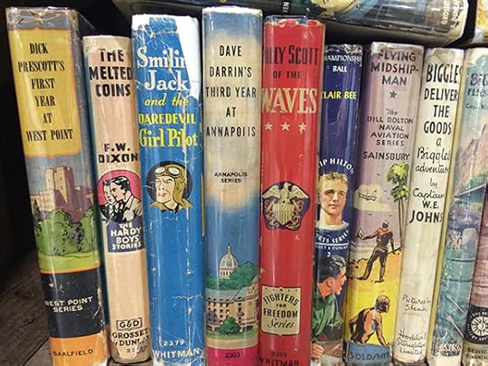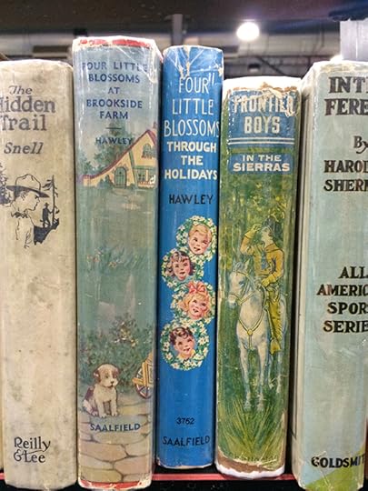 I'm working on a cover right now for a collection of short stories for children and young adults that the University of Minnesota Press is doing (in conjunction with the Mid-continental Oceanographic Institute/MOI). For that reason I just went back to look at some of the stuff I've come across over the last few months for inspiration – when I'm out in the world I generally try and keep my eyes open for interesting book covers. The images below come variously from the Miami Book Festival, a flea market in Paris, an antique market in Portland and a hotel in Astoria, Oregon... and elsewhere. Along with covers I'm also especially interested in ways designers play with a book's spine,. In my opinion it's an under-appreciated aspect of the package. If only contemporary books for adults were as playful and visually interesting as the old-school YA spines shown toward the bottom of this post.