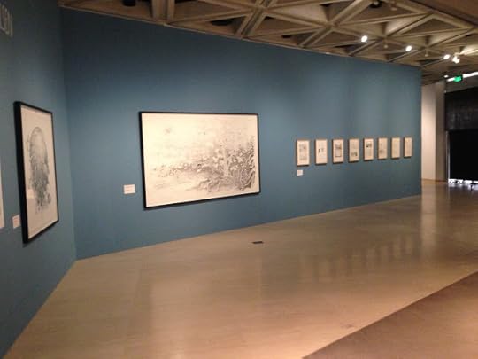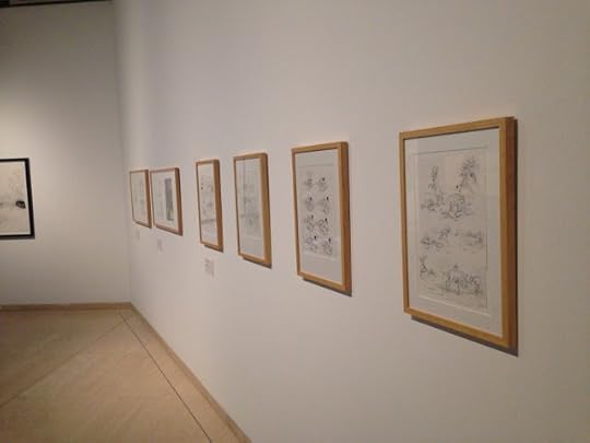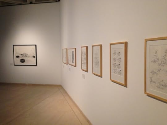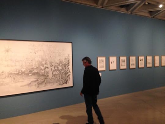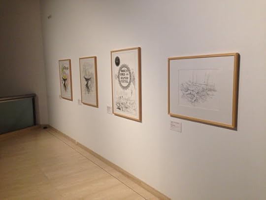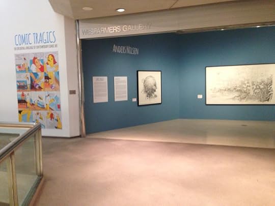 Just got a clutch of photos from the Comic Tragics show at the Art Gallery of Western Australia in Perth. From the looks of it they did an amazing job framing and matting everything I sent. Just one drawing alone is seven feet wide and almost five feet tall. It looks like an amazing show. The big drawing is Adam and Eve Sneaking Back into the Garden to Steal More Apples. Also shown here are a large rootball drawing, the originals from Me and the Universe, original art for posters I did for both Autoptic and the second Brooklyn Comics and Graphics Festival, a bunch of pages from Dogs and Water, The End, Big Questions and Don't Go Where I Can't Follow, sketchbooks with some early versions of pieces from The End, a one-of-a-kind accordion book, Captain America Resting and a drawing of a car engine. Huge thanks to Robert Cook and to everyone who mounted the show.