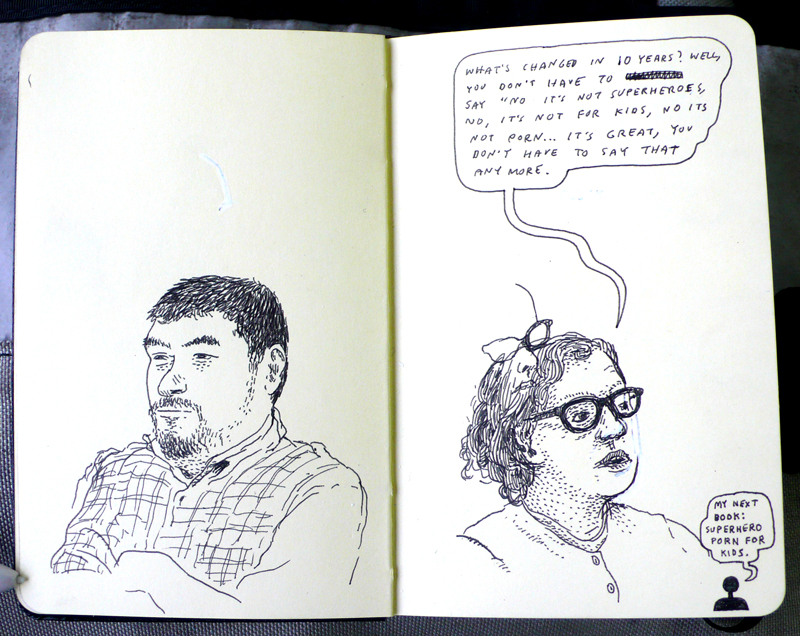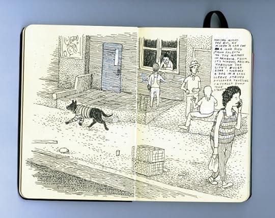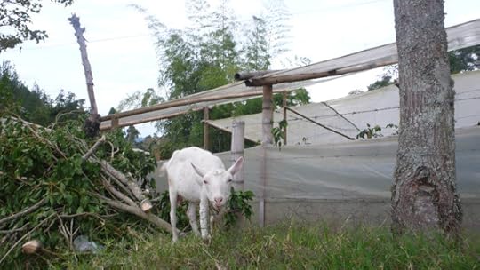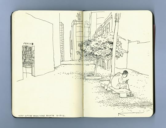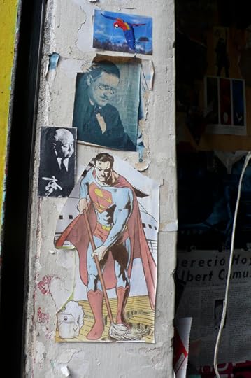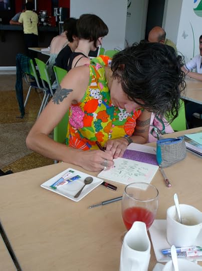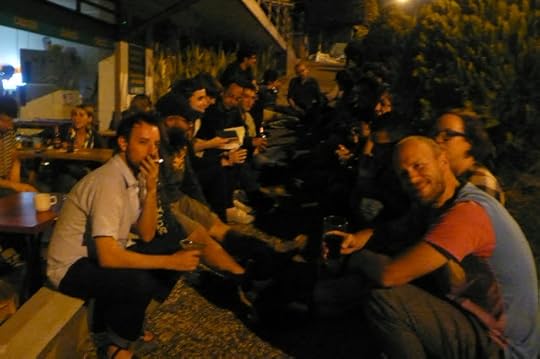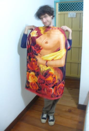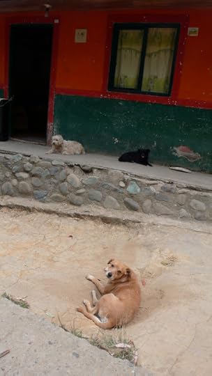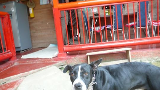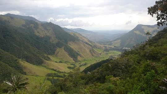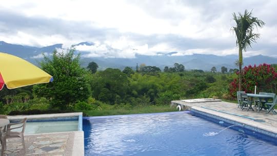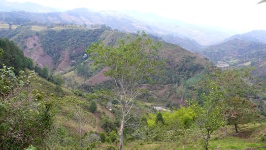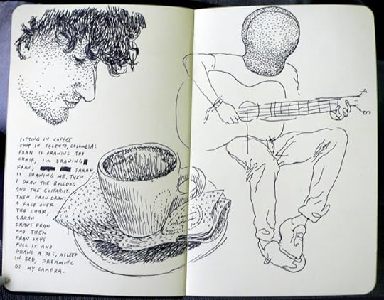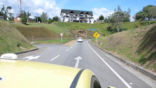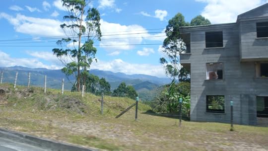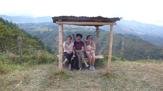 From Medellin we went to the city of Armenia for the main part of the festival. This was the view from our hotel outside Armenia. The drive into the city from here took us past miles of coffee and banana farms. It was a little hard to leave this place. The festival afterparty on the last night in Armenia. In the foreground are French artists Jerome Mulot, Florent Rupert and Peggy Burns. At brunch the next day Power Paola had an amazing dress. She was one of many artists I met who I am very sorry not to be able to read. Her drawing is really great. Below are some photos from out the window of the cab on the way up to Salento where we spent the weekend off before heading to Bogota. I missed a shot of an old discotheque which our driver said had been abandoned when two separate people claimed to have visions of the devil there. This building was apparently once a discotheque run by one of Pablo Escobar's main lieutenants. The next day in Salento we walked down to a coffee plantation and got a tour. Sarah, Fran and Peggy. These three guys were hanging out on the porch listening to super loud salsa music, holding it down, keeping it real. These two guys helped out with the tour.