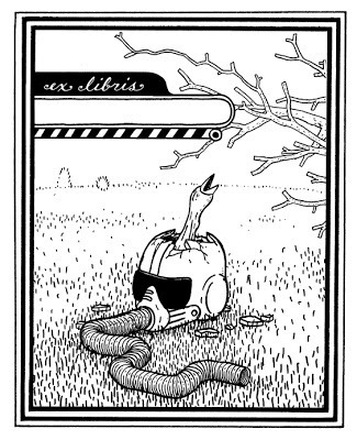 Above: the new cover for L'association's French edition of Big Questions (apparently "Big Questions in French is "Big Questions") along with one earlier version, a little ex Libris plate for a bookstore in Paris and the new title page for the German edition (Atrium).