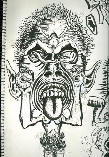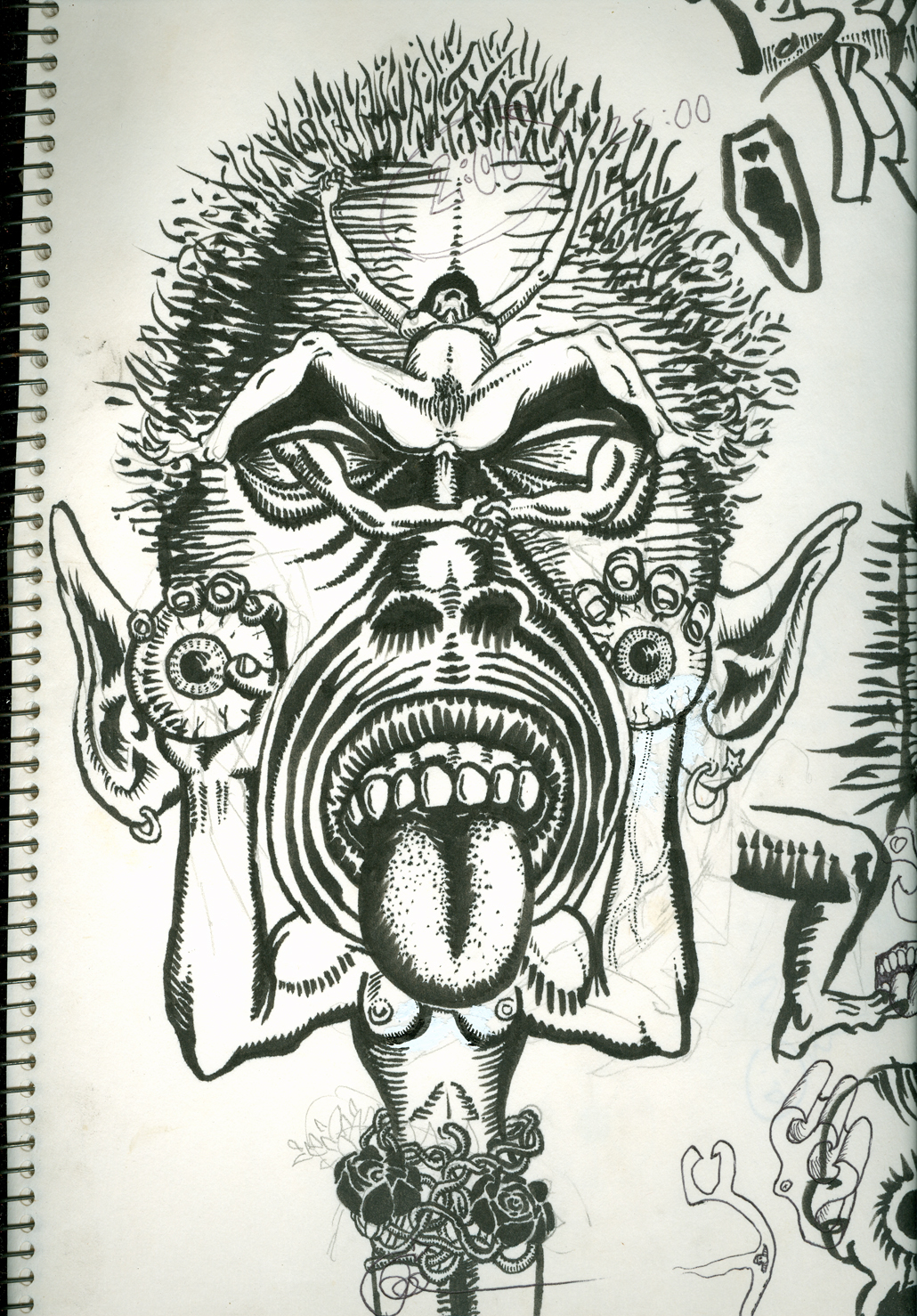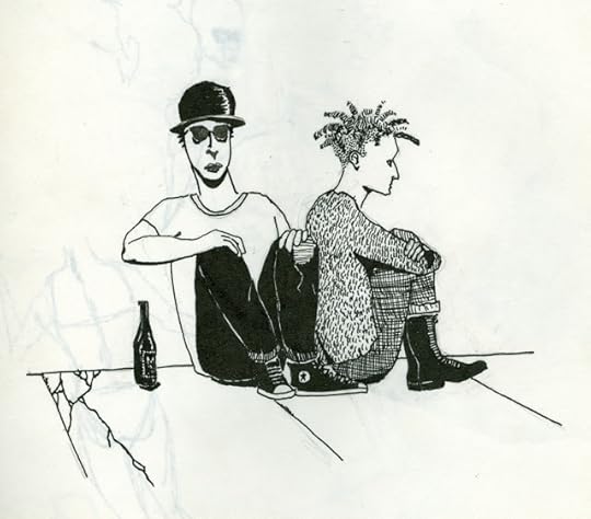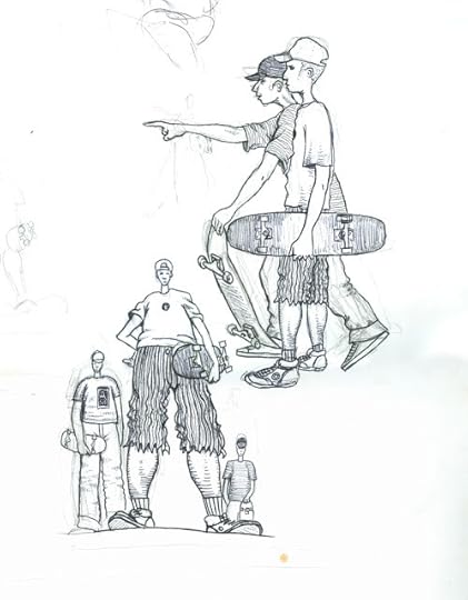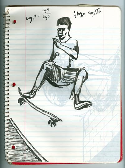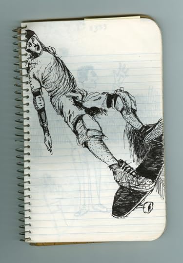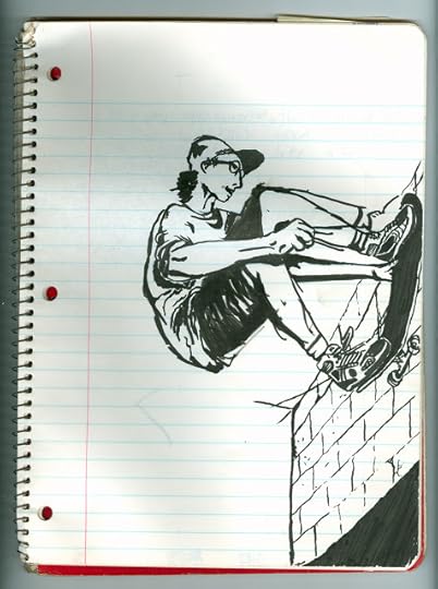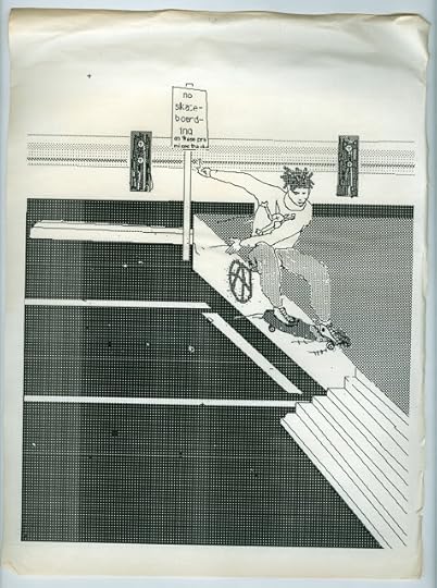 Below are a few of many many skateboarding drawings. My dad got a little beige Apple MacIntosh in maybe 1987. I spent a lot of time drawing stuff like this first piece in its bundled program 'MacDraw' that year (impressively the machine was still working – and in use – until just a couple of years ago). Below that are drawings of mid-west skater icons Neil Blender and Jesse Neuhaus, and 'studies' for a semi auto-bio comic I was planning (there was a lot more planning of comics than there was actual drawing of them when I was a kid). The last few drawings I'm pretty sure were heavily influenced by Love and Rockets and Rocketeer.
