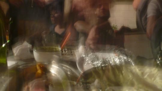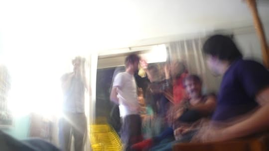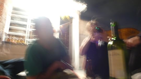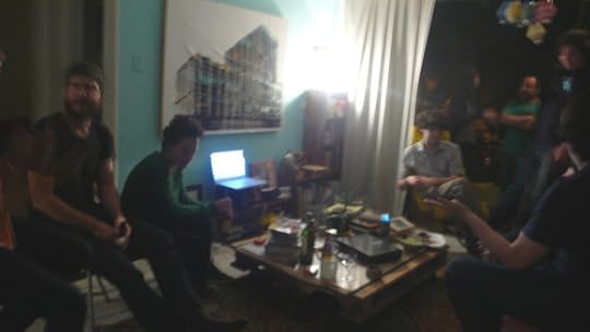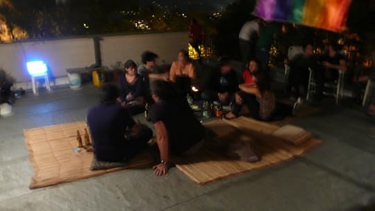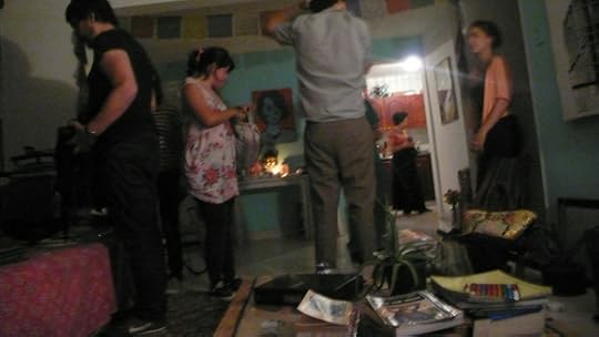 It started raining shortly after the food had been eaten (good timing) and we all went downstairs into the apartment. Below are the ghosts of Fran, Joni B, Santiago and Truchafrita.