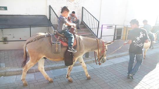 In the neighborhood at the top of the tramway it felt like some sort of street festival. But it was just Sunday afternoon. Everyone and their mom and their three cousins was out hanging out, riding donkeys, shooting target practice with a BB gun, and running around in the little 3' bowl with the sleeping dog next to it. It was awesome. I thought about coming back to skate the bowl later, but the word was that that area might not be so safe on one's own on a weekday. Alas. Anyway it was a pretty long trip from the hostel.