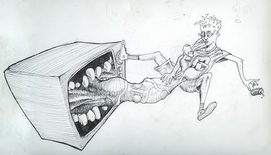 Aagh. This SUCKS. I met Marie-Flo at Pierre Feuille Ciseaux last October. She was quiet and shy with a fleeting, sweet smile, a shaved head and a newsboy cap. She was tall and thin, and dressed all in blacks and grays and navy blue. And she made phenomenally wonderful drawings. Drawings like her in some ways: quiet, thoughtful, a little mysterious, and singular. She spoke almost no english, and I spoke even less french, so our conversation was pretty limited. But we worked together on at least one jam exercise. And talked a bit one night at the bar with the help of some more multi-lingual friends. A few days ago she took her own life. I don't know. What do you say about this? It's not fair. She had more work to do. She shouldn't be gone yet. She had a great collection of deeply compelling found images on her facebook photo roll – though I'm sorry to say her facebook page has been taken down. But her blog, pretty-teeth, as of this writing, seems still to be up. Please go look. It's worth it. I barely knew her and this breaks my heart. My thoughts go out to her friends and family. The world is a poorer place.