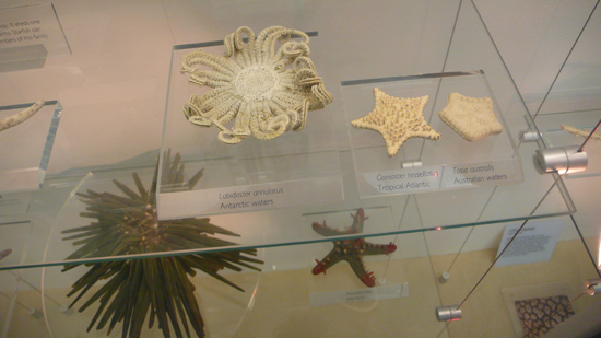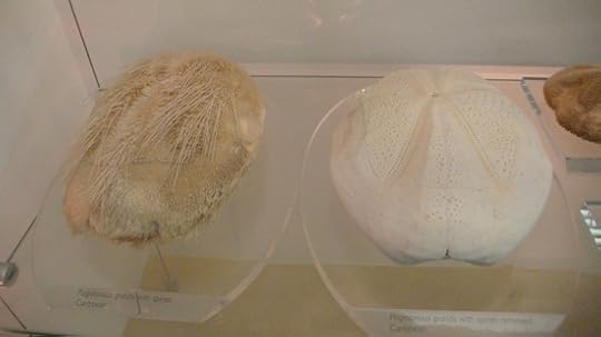 My fourth day in England I drove back to London from Leeds, arriving with enough time to get to the Natural History Museum for about an hour before it closed. There was a bunch of cool stuff I'd like to have sat down and drawn for a while, but wasn't in the mood, somehow. I ended up spending most of my visit in the Marine Invertebrate room, which was the emptiest room in the museum, it seemed. Me and a bunch of lonesome, weirdly beautiful shellfish and coral, regarding one another sympathetically across the centuries from behind glass.