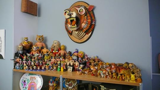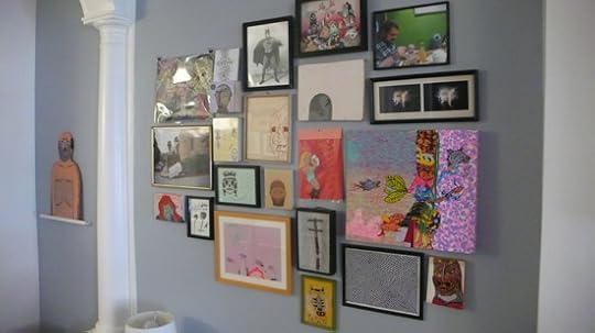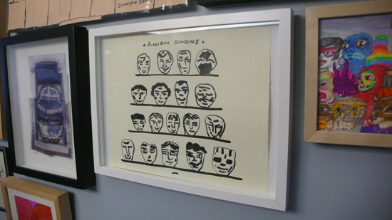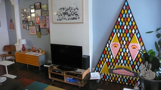 The night at Brickbat in Philadelphia was the night the Famous Canadian Cartoonist Flu of 2011 really took hold and I started feeling miserable. We stayed with the incredibly gracious Matt Leines and he outfitted me with the building's penthouse which had a private bathroom that was actually bigger than my bedroom at home. It was awesome. Below are a few pictures from the house, and in particular a bunch of Matt's art collection, which was amazing. Stuff by Chris Johanson, Barry McGee, R. Kikuo Johnson, Brian Chippendale, Marc and a bunch of others. The giant triangle is Matt's