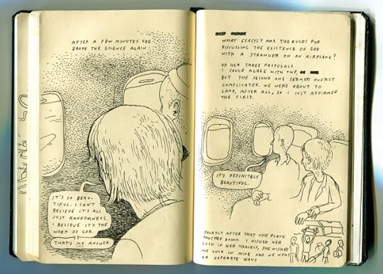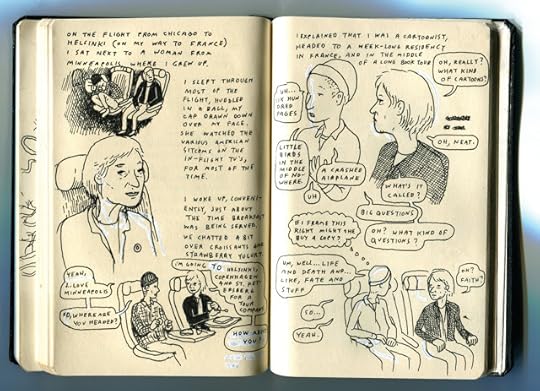 I'm in France at the moment at Pierre Feuille Ciseaux about which I'll have much to post soon. I also did a strip in my sketchbook about a conversation I had on the plane on the way here, but it needed some correction, so while the white out is drying there is this: I was on Mark Bazer's Interview Show at the Hideout a couple of months back (I posted a drawing I did of fellow guest Cameron Esposito's ear while I was there, back in September). Video of the event just came up at WBEZ.