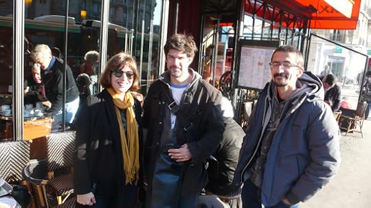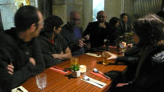 Dinner in Besançon at Seize OGS. Tony Papin is on the Left. Zak, Anton, Matti and Sarah Glidden follow. The first course was edamame with sea salt and green tea. Much more to follow, including screenprinting, crowdsurfing, and several photos taken in a dimmly lit bar by someone who was slightly inebriated.