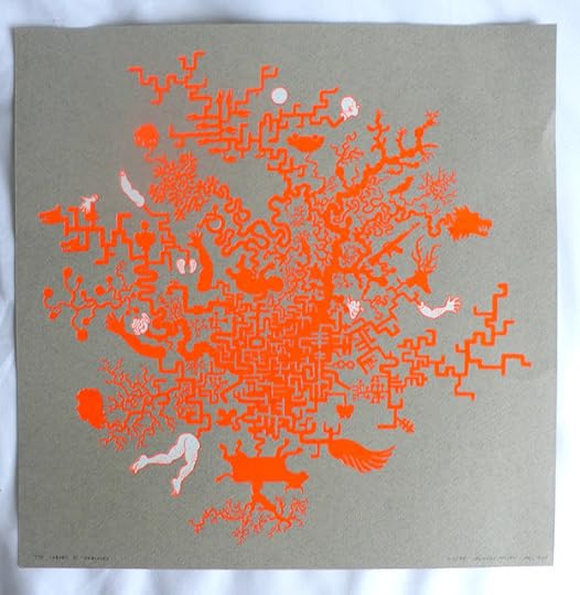 And the finished print. To get the red to really pop it was necessary to underprint it entirely with white. Even all those spindly little lines. Nono was probably ready to strangle me. by the end. He did an amazing job.