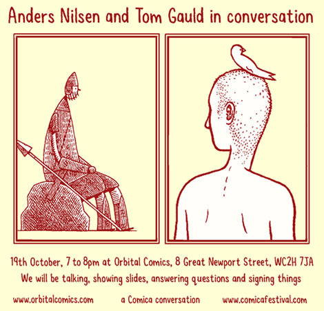 Tonight I'm going to be talking with Tom Gauld and Paul Gravette at Orbital in London.