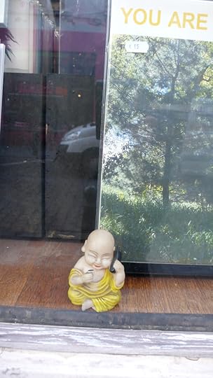 The Buddha drinking espresso and talking on his cell. And a reminder about Buddha nature. Thank you Buddha. I'm trying. Quit calling me.