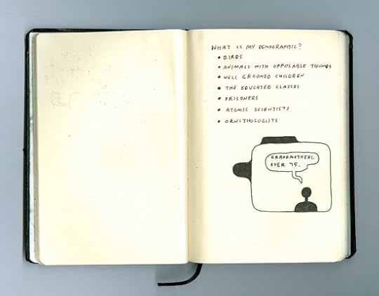 I made a sidebar (see right) with links to some of the reviews and other articles that have come out in the last few weeks regarding Big Questions. The interviews at Publisher's Weekly and Comic Book Resources, and the article in the Chicago Tribune are the most extensive and wide ranging. I just read over the one from the CBR site and was really pleasantly surprised--I did the interview while driving the rental car, between Portland and Seattle, and I remember feeling a bit distracted. But I don't think I come across that way. Alex Dueben had some really good questions and did his homework. A sample: