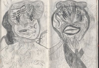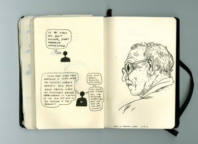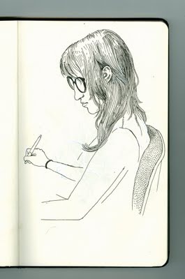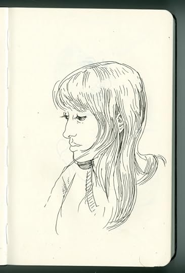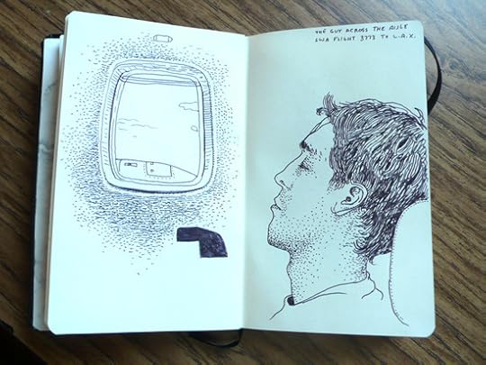 Went to bed at 1am, got up at 5. I did a couple of drawings on the airplane. Sammy took us to the best old-time L.A. burger joint ever. I took a nap. I talked to his kids about learning to swim. Two hours from now I give the first reading with Souther and Ron. And I'm almost done with my slide show. Almost.