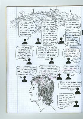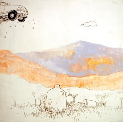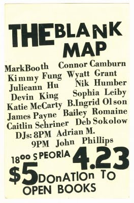 If you're in Chicago tonight you should come check out this show. It's got a bunch of good stuff in it, not least Mark Booth (below) and Deb Sokolow (below that) who both rule. It's in Pilsen near 18th and Halsted. It's also a benefit for Open Books which might be the best bookstore in the city, and is also a non-profit promoting literacy.