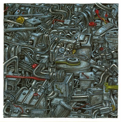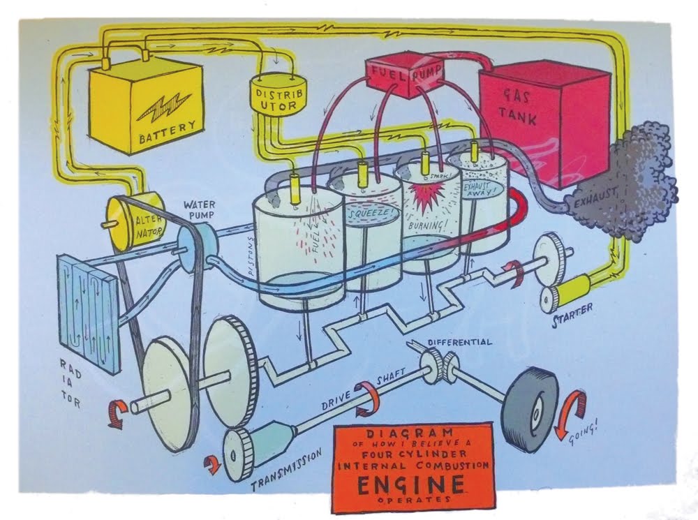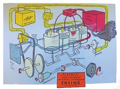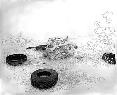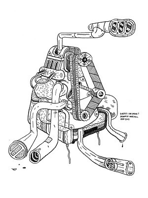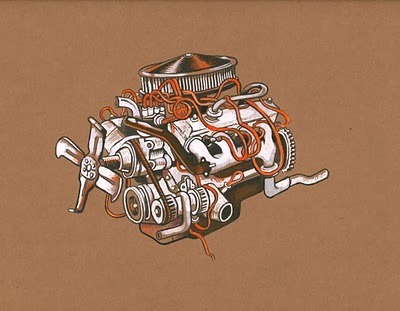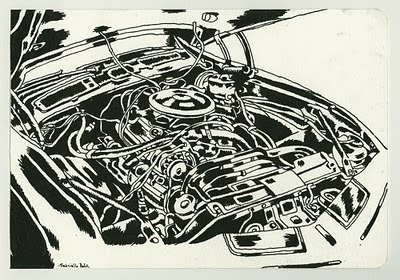 This is the drawing I did for the Car Engine show. It's 30" by 40" or something like that. Drawing car engines is fun.