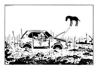 Concurrent with the Car Engine Drawing Show this Summer at Lula is a show of pencil drawings by Amanda Vähämäki and Michelangelo Setola (also in the Car Engine Show) both of whom are part of the Italian comics collective Canicola. The drawings are partially collaborative, many have appeared in their artists book Souvlaki Circus, published in the U.S. by the late, lamented Buenaventura Press. The drawings are little gems of narrative image making. They are mysterious, understated and dreamlike...