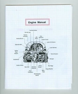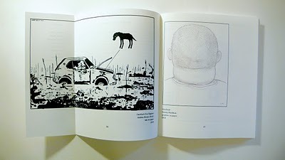 We made a little catalog for the Car Engine show, featuring images of each of the artist's work. Full color. Proceeds from sales of the catalog will go to benefit Tommi Musturi and Marijpol, whose work was damaged in the flood at Lula a couple of weeks ago (see right to order--$10). Below is the first spread.