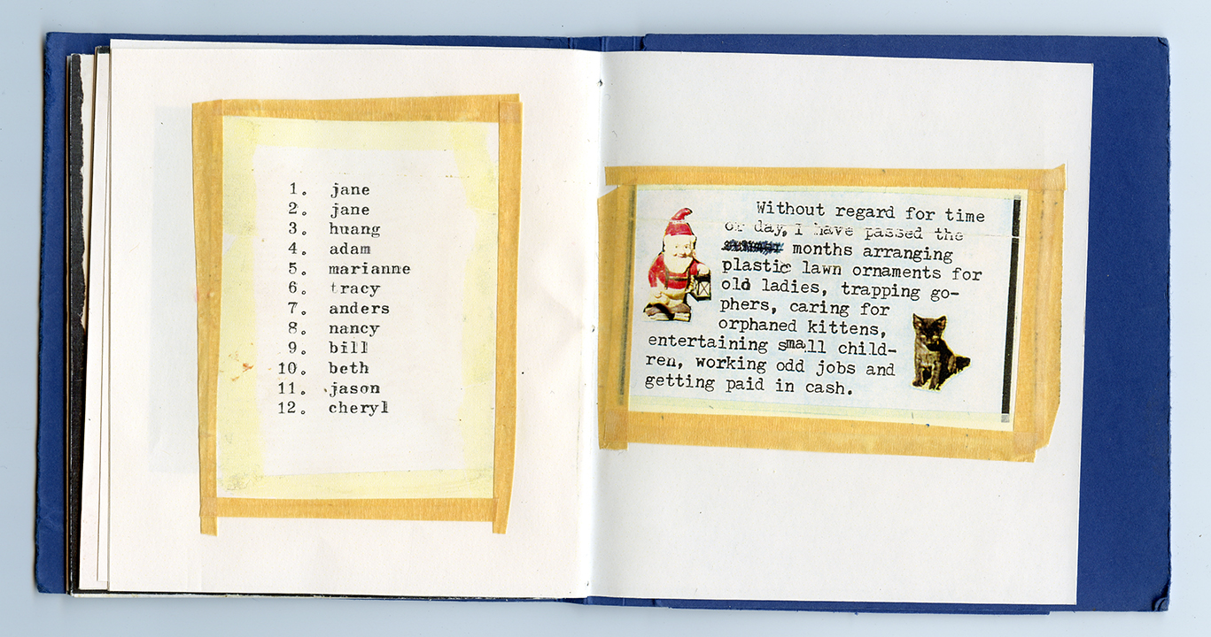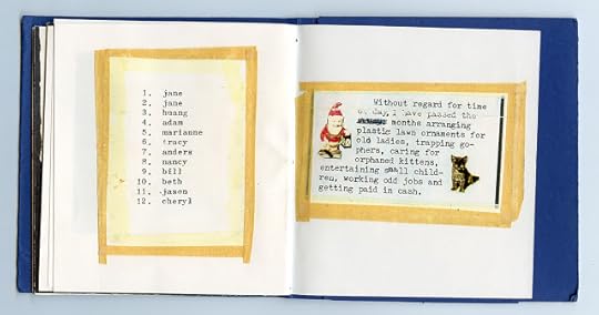 Ten years ago can feel like a lifetime past and then it can suddenly feel like the day before yesterday without any warning. Ten years ago today was Cheryl Weaver's last day on this planet, a fact that everyone who knew her will recognize as pitifully unfair. She was remarkable and beloved in too many ways to count. I've said plenty in other places about all that. For today I will just put down some images and pictures of her own. So, below are pages from a little book she made the year we met, at the School of the Art Institute of Chicago. She made copies of this book to give to each of the students on our floor of the SAIC artist's studios on the 15th floor of the Michigan building (more of her work can be seen here, here and especially here). Some of these people are lifelong friends now, all these years later, but others are long gone from my life. If one of these faces is familiar to you, pass this post along, they'll surely remember the book, I think. And if you knew Cheryl yourself take a second to raise a glass sometime this weekend, and spare a moment to remember a remarkable woman. Her time was way too short, but it was also very well spent. She's not forgotten.