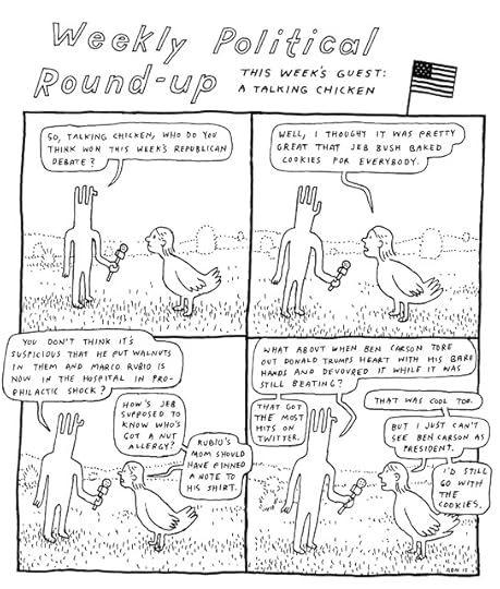 This made the rounds via Facebook, but here's a direct link. It's a twelve minute video interview with Bill Kartalopoulos, Julia Gfrorer, Gabrielle Bell and myself on PBS at the Miami Book Fair last weekend. I just re-watched it and was pleased to be reminded that so much of the discussion was about the importance of comics being uncategorizeable, and distinct from literature. As comics grows and accumulates mainstream acceptance it still can, hopefully, stay deeply idiosyncratic. Kudos to Bill and Jonathan for assembling such a diverse group of cartoonists in the most 'mainstream' of anthologies.