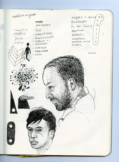 And these are a few drawings from Autoptic meetings earlier this year (and one of a colleague at MCAD, Kindra Murphy, from a meeting there last Spring): Zak Sally, Jenny King, Raighne Hogan (twice, in various stages of beard growth), Robert Algeo, Justin Skarhus and Jordan Shively. Somehow I never got around to drawing Caitlin or Tom. Next time.