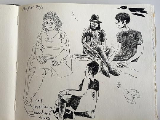 I Miami last weekend I got to hang out with Gabrielle Bell and poke through her sketchbook. She doesn't normally post stuff from her sketchbooks, so I'm taking the liberty here, with her permission. You should go read more of her stuff here. We also started a strip together in my journal, which hopefully I'll be able to post sometime soon, as well. Gabrielle also prompted some group collaborative drawing with Julia Gfrörer, Leanne Shapton and Craig Thompson, who were also all in town. I'll hopefully be able to post some of that, soon as well.