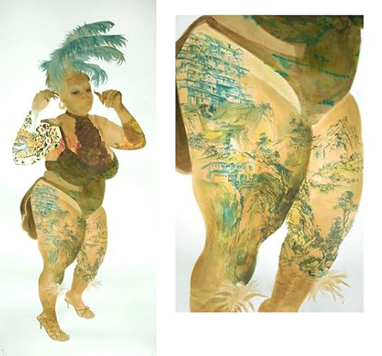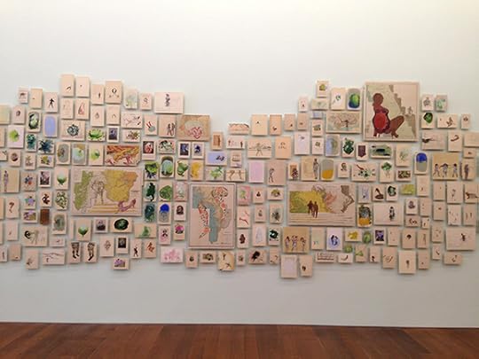 Last Sunday before heading to the airport Bill K, Julia Gfrӧrer and I walked from the Book Fair over to the Perez Art Museum of Miami. Arriving under it's roof just as the skies opened up in a momentary squall. Miami is unlike most other US cities in many ways, but in particular it feels much closer to Latin America than to the majority Anglo cities I usually inhabit. The usual categories and hierarchies of class and race and cultural niche just don't seem to apply there in quite the ways one is used to in Chicago or New York, San Francisco or Minneapolis. There is as much Spanish being spoken on the streets as English and the English is, likely as not, accented with Spanish and Creole. It's refreshing. The Perez Museum reflects this difference. For one thing the work seemed to reflect more social and political consciousness than its sister institutions around the country generally do. That can of course be a good or a bad thing depending on the artist. There were a lot of romantic and nostalgic stacks of dusty old found objects, for example, meant to evoke lost innocence and absence. But there was also Firelei Báez. The time spent among her drawings were a highlight of the trip, and a revelation. The first two images are life-size figures drawn and painted in gouache and watercolor on giant sheets of paper: