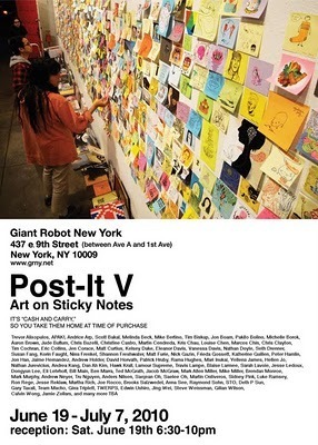 Tonight the first East Coast incarnation of the Post-it show (previously San Francisco and L.A.) opens at Giant Robot NY from 6:30-10. I have several pieces in it (see below). Twenty bucks each. Cash and carry.
