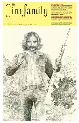 Fridays in July (there are two left as I write this) Cinefamily in Los Angeles is doing a little Dennis Hopper festival. Sammy asked me to do a drawing of everyones favorite cracked nitrous huffing film icon and auteur for the cover of the program. They are showing truly impossible to find rarities. Stuff that, even in this age where everything can by found in the world of cyber, some of these films can't. It's worth a look.