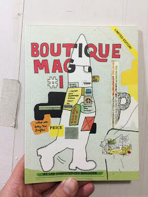 Marc Bell just arrived in Minneapolis for our tour kick-off on Wednesday at Magers and Quinn (7pm). He brought a pile of his @#$%ing awesome new risograph book Boutique Mag #1. Apparently there are only 27 copies left and his etsy site is currently getting repo'd, so if you want one you have to come to one of our events and listen to us read poetry.