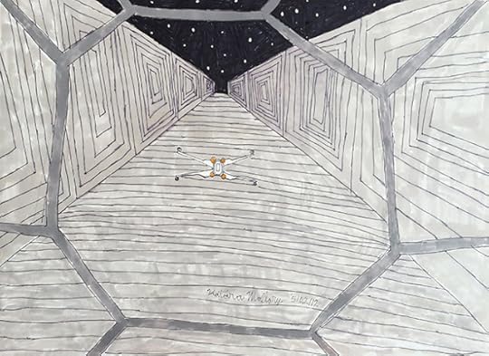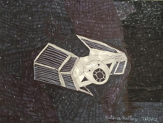 While I was on book tour last week Marianne Fairbanks oversaw the installation of the new show at Lula in Chicago. The show includes work by Katara Mallory and his mentor Leslie Baum. Leslie teaches art to students with developmental disabilities at the Nathan and Kiyoko Lerner foundation (Nathan Lerner was Henry Darger's landlord, and discovered that work. Katara is her student. He does drawings based on screen shots of Star Wars. Here are a few images. If you're in Chicago in the next couple of months you should go check them out. A couple of Baum's pieces are below that from a studio visit a few weeks back, including something that looks for all the world like the Deathstar. Influence moves in circles, perhaps.