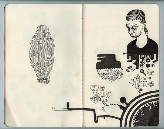 I'm working on a long form story again, real comics. It's all in the very early stages, there's no title yet, the story is still crystallizing in my head. But I just finished 21 pages which will be in the next Alternative Comics anthology. Here are three: