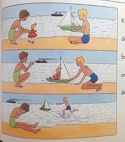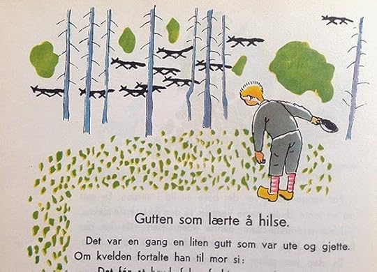 My sister found this book at a thrift store a year or two back, and it's been sitting on a shelf in her house ever since. I notice it every time I'm over, and have been meaning to post these images forever. I can't get enough of this drawing. Simple, direct, casual almost to the point of laziness. But virtuosic laziness. From an era when artists learned how to draw for real, to the point where they could do convincing, natural human forms in their sleep with just a few quick lines. Also perhaps of an era when illustrators of this sort may have been very aware of the rise of abstraction and questioning themselves a bit: note the weird Matisse-ish tree on the cover, and the odd, repeated stickfigure foxes in the forest. Anyway I don't know if Hans Bergerson is the artist, but whoever it is is my new hero (except for that weird flute playing fox... not sure what happened there).