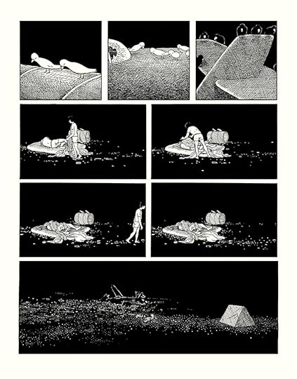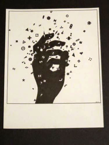(it's inverted in the book). Most of the silhouette art from this story and from Rage of Poseidon doesn't really have coherent original art, so this is something of a rarity. Below that is a cover image I did a few years ago for Norton's American Hybrid poetry anthology (when RT's Eric Lorberer was at my house looking at originals he told me that that book became well known and, to some, deeply disliked among poetry fans following publication). Head to Rain Taxi's ebay page to see a panel from Big Questions and some drawings of movie stars from the 1920's that I did as sketches for Daisy and Tom Buchanan for a cover of the Great Gatsby in 2011.