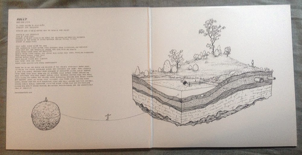 Early last year I did a record cover for my friend Holly's first record. Somehow I never got around to blogging it, but she's crowdfunding the money for her second record now, ending today (January 5th), in fact, so maybe now is as good a time as any. Aside from Holly being one of my favorite people on the planet, I have an interest in the fundraising, because I'm slated to do the cover of the second go round as well. Here's an image of the first record, a gatefold with foil stamping: