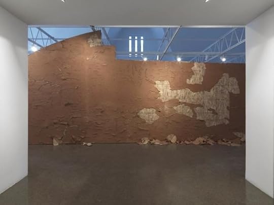 I don't really know quite what to make of this. One thought I had was "I've been Roy Lichtensteined." But that's really not true. Whatever this is, it's not an aestheticization of mass consumer culture (I just like the idea of turning Lichtenstein's name into a verb). The other main thought I had was: I wish someone had bothered to tell me about it. I'd have liked to have seen the show. From everything I can tell, he's a thoughtful, provocative artist (another piece from the show, a wall of ketchup mixed with joint compound is pictured below). I am very interested in the ways an artwork ceases to belong to the artist when it moves out into the world, how, if it's really successful, ownership transfers, in a very real way, to its audience. And how that phenomenon might conflict with copyright law or with the artist's own self-interest. Meanings in art are messy, never fixed. So I like the idea that that page can resonate with unintended meanings in a new context. Part of me feels honored. And yet, being completely honest... well, it's weird to be on the other side of the process. I wrote him today, so now I'm waiting to hear from Mr. L.