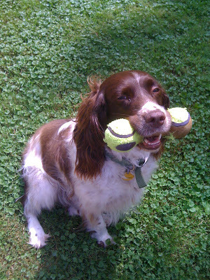 Here he is with his fave magickal tool...his ball bell!!! :-)