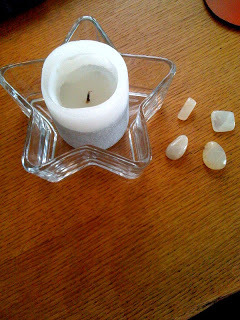 Now then...I also toss in a few wonderful magickal correspondences, such as my Moonstones and white and silver candles to give the magick a bigger boost yet!