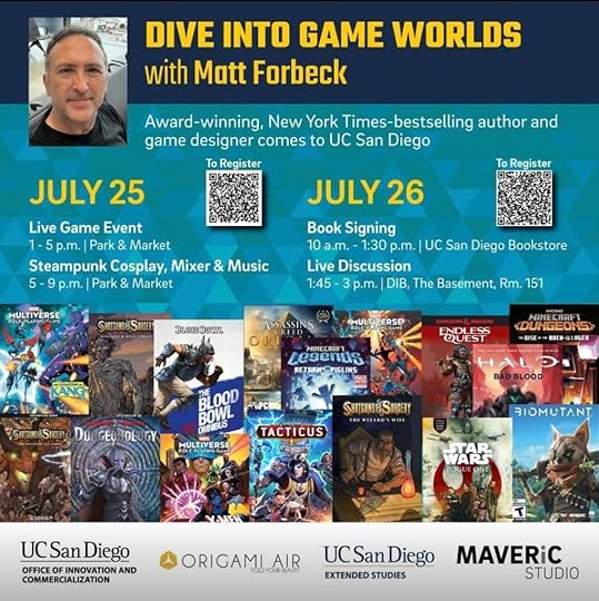 Wednesday, July 246 PM: Signing for World of Warcraft Chronicle IV in the Dark Horse Comics booth (#2615), inside the convention center. Thursday, July 25Noon – 9 PM: A Day with Matt Forbeck. This is at Park & Market, a short walk from the convention center, and it’s free! No badge required! Marty and I and a fantastic cast are doing an actual-play game — set in my Shotguns & Sorcery world — to celebrate 50 years of Dungeons & Dragons. That runs from 1 –5 PM. Afterward, there’s a steampunk cosplay mixer with music and wild new drinks, including (hopefully) a dragonfire cocktail. Tickets are free, but you should grab them here to guarantee you can get it.