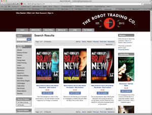 Part of my plan for 12 for ’12 isn’t just to write a dozen books in a year. It’s to be able to produce and sell them forever after that. As the first step in that, I’ve gotten the Brave New World trilogy out the door and placed it with as many different decent online retailers as will have it. You can now buy the ebooks from Amazon, Barnes & Noble, Drive Thru Fiction, iBooks (except for Revolution for some reason — I’m checking on that), Smashwords, and the Sony Bookstore, and you can grab printed editions through Drive Thru Fiction and Amazon too.