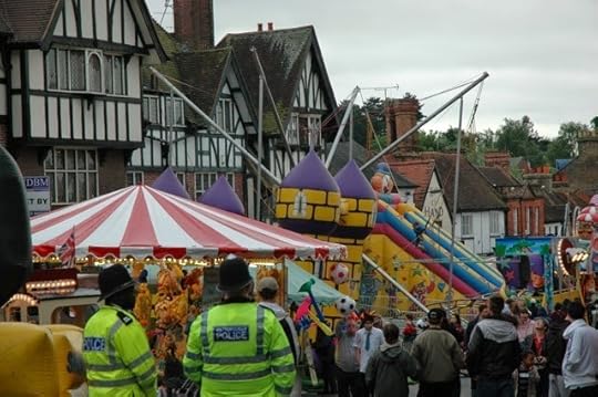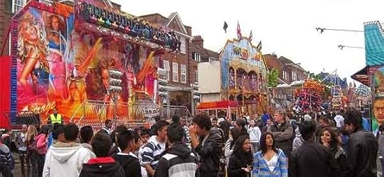A drizzly day at Pinner fairNowadays, there is no dancing, but plenty of eating and drinking. For the one day of the fair the main roads of the High Street and Bridge Street are closed to traffic to make way for the attractions. It must be a sign of my age but the fair lacks the magic it held for me as a child. It just seems noisy, dirty and expensive. So what about you? Do you like fairs?