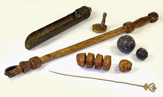 Mary Rose - carpentry toolsIt is not just the salvaged cannon or the armour and weapons that are invaluable, it is the small, everyday things. They have become the greatest treasures. There is no thrill on this earth like looking at a handful of dice last thrown by a sailor in 1545, or a leather shoe last worn by a man defending our shores from French invasion five hundred years ago, or a nit comb still thick with 16th century lice. To me, and other peculiar people like me, those things are rarer, and more thrilling, than the crown jewels.