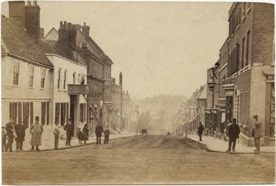 The Queen's Head in the backgroundMy father and I would walk along Bridge Street and the High Street to watch the lorries being unloaded and the bustle of rides being set up. In previous decades this was regimented by the police and a sergeant would blow his whistle at 6pm, to signal the start of the 'rush-in' to claim the best pitches. The fair people, who were waiting in side streets, would rush to their favourite spot and lay claim to it by sticking a pole in the gutter.