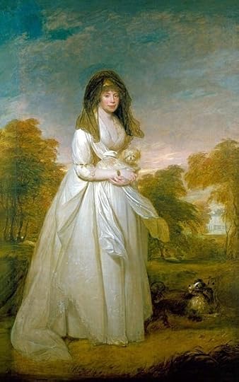 Queen Charlotte with one of her dogsBadine, which means “playful” in French, was the most famous of Charlotte’s dogs. He was at court around the same time as Fanny Burney, which means he featured in many of the novelist’s diaries and letters.The queen, Burney wrote, when she goes to early prayers, often leaves me the charge of her little favourite dog, Badine. To-day, after her return, she sent her page for him; and presently after, I had a rap again at the door, and the little Princess Sophia entered. "Miss Burney," cried she, curtseying and colouring, "Mamma has sent me for the little dog's basket." It seems Badine was a dog particularly attune to his owner’s feelings. Charlotte was deeply distressed after an assassination attempt on her husband. Badine would not leave her while she was unhappy. When [the queen} was dressed for the chapel, she desired me to keep little Badine; but he ran out after her.