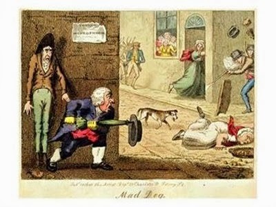 Thomas Rowlandson - A Mad-dog in a Coffee ShopThis week’s blog post was inspired by a cartoon by Thomas Rowlandson of a rabid dog in an 18th century coffee shop. It set me wondering how common rabies was in Georgian Britain…read on to find out.Rabies has been widespread throughout the world, including Britain, for many centuries. In Georgian times a notable outbreak occurred in Britain around 1734 - 5. Reports of rabid dogs went quiet for a while but then sadly escalated in 1752 when they penetrated St James’, in the heart of London. Orders were given to shoot dogs on sight.