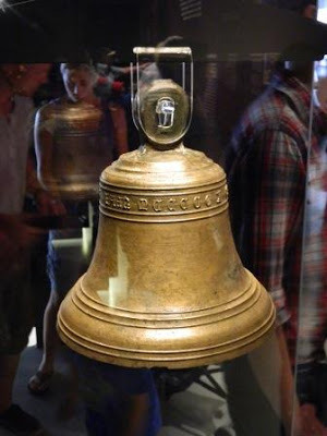 The ship's bell.Author's own photo.It's astounding to think of the history associated with this bell and the number of Tudor sailors who would have seen or heard it. The bell was made from brass, in Antwerp at a foundry that specialised in bells. It was one of the few artefacts present on the Mary Rose throughout her 33 year career from launch to sinking.