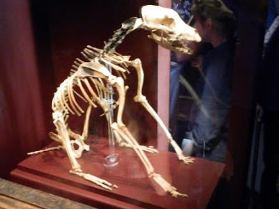 A dog - found outside the carpenter's door.Author's own photo.Any ship would have been rife with rats and vermin, and perhaps that is why a dog was on board. The skeleton of a whippet type animal, aged around 18 - 24 months was found outside the carpenter's door. (On the way out of the museum, passing through the gift shop, I was amused to see a plush toy replica of the dog! )