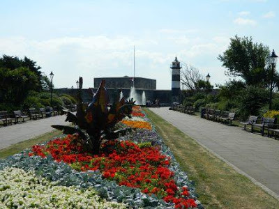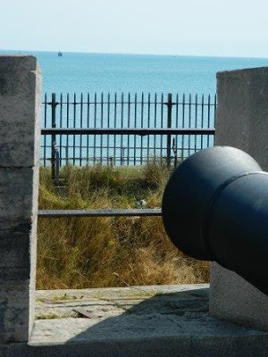 Southsea Castle (centre, in the distance to the left of the lighthouse)Seen form Southsea Common. On a perfect summer’s day, I fed my history addiction by visiting Southsea Castle and then the Mary Rose museum, Portsmouth.