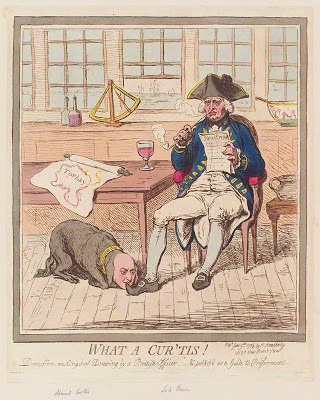 18th century Cheezburger? Satirical etching that portrays Sir Roger Curtis as Lord Howe's dog The association between man and dog is an ancient one, perhaps even extending back beyond the birth of language as we know it. But the words used to describe our canine companions, have changed and evolved, every bit as much as the dogs themselves. My next couple of blog posts consider some of the terms used to refer to dogs over the centuries.