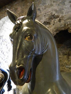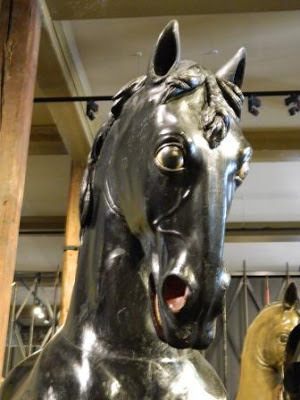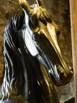 The poses of the horses are striking and a wonderfully insightful blog post on the significance of their stance can be found on here, on the 'History Needs You' blog. Be it artist or carpenter, it is obvious that whoever crafted these life-sized creatures had a wonderful empathy with the equine species. Prancing and firy, noble and elegant, you can read the respect of sculptor for subject in every vein and sinew. Indeed, the figures are so detailed that each model has horse shoes!